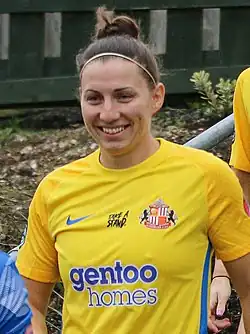 Grace Elizabeth McCatty (born 28 September 1989) is an English footballer who currently plays as a defender for Sunderland. Prior to her move to the North-East with Durham, she featured eight times in the UEFA Women's Champions League for Bristol City.[2][3]