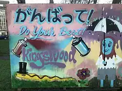 A graffiti style mural created as part of a collaborative arts project with residents of Kingswood Estate, Southwark