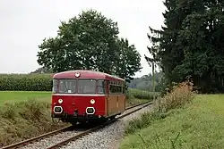 The traction for the trains was first supplied by steam locomotives of class D VI and VII D, but under the direction of the Deutsche Reichsbahn they were gradually replaced by machines of class 70.0, 86 and 98.8. In its early years, DB used locomotives of class 64 and 98.3 (Glaskasten, "glass box") at times on the line. Railbuses were used on the line from 1954 and in 1962 they replaced steam locomotives for passenger traffic completely. In the following 32 years, the railbuses were used as needed in combinations of up to five vehicles, although some passenger trains were formed for a couple of years from passenger carriages and class V 100 (later class 211/212) diesel locomotives. After the replacement of steam locomotives, freight trains were also hauled by class V 60 shunting locomotives.
