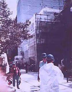 On August 19, 1989, a large steam explosion in front of a residential building generated an asbestos-containing steam cloud in the Gramercy Park neighborhood of Manhattan, New York City.[1] Two people–a Con Ed worker and a 3rd floor resident–died instantly, and 24 were injured.[2] A third person, another Con Ed worker, died the following day.[3] Two hundred residents were displaced for months while cleanup crews worked to remove asbestos-containing mud from building facades.[4] All apartments were remediated by asbestos workers and tested for airborne asbestos.