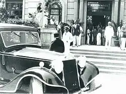 Benito Mussolini in front of the Grand Hotel Riccione, 1935