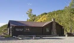 The largest concentration of structures from this era comprise the Old Administrative Area Historic District at Beaver Creek. The park headquarters, superintendent's residence, four employee residences and three warehouses were designed in Park Service Rustic style and built by the CCC between 1934 and 1939.[51] The Moose Entrance Kiosk was built nearby, and has since been moved to Moose.[52] Private development in the 1930s included the Jenny Lake Boat Concession Facilities, built by Charles Wort, who held a legacy concessioner's permit originally issued by the Forest Service, and who built a boathouse on Jenny Lake. Wort's family went on to establish the Wort Hotel in Jackson and the Signal Mountain Lodge. Robert Reimer, who took over the Wort concession at Jenny Lake in 1935, added a personal residence to the Jenny Lake ensemble.[53]