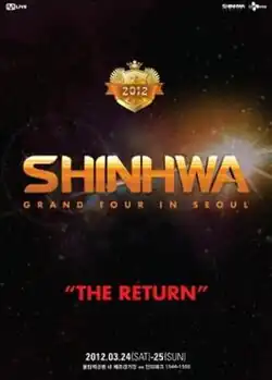 2012 Shinhwa Grand Tour: The Return is the Asia-wide live concert tour of South Korean boy band Shinhwa to support their tenth studio album, The Return, which was released on 23 March 2012. The album and tour marks Shinhwa's comeback to the music industry after a four-year hiatus,[1] since their 10th anniversary concert held in 2008, during which band members served individual mandatory military services.[2][3]
