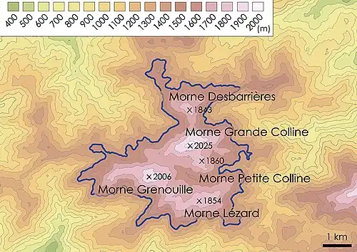 Grande Colline National Park (French: Parc National Naturel de Grande Colline) is a national park in Haiti established on July 23, 2014 with an area of 1,510 hectares.[1] The park contains the Grande Colline mountain range (Chaîne de la Grande Colline) at the core of the Occidental La Hotte Massif (Massif de la Hotte) in southwestern Haiti, west of Pic Macaya. There are five named peaks: Morne Desbarrières (1843 m), Morne Grande Colline (2025 m), Morne Petite Colline (1860 m), Morne Grenouille (2006 m), and Morne Lézard (1854 m).[1][2]