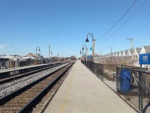 The station has been rebuilt to incorporate longer platforms and ADA-accessibility. The adjacent overpass above Milwaukee Avenue was also rebuilt. Construction began in October 2021 and was originally scheduled to be completed by spring 2024.[5][6][7] However, delays pushed the completion date to the summer of 2025.[8][9]