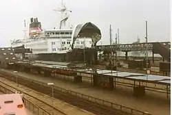 Train ferry M/F Prins Joachim arrives in Nyborg, 1991/92.