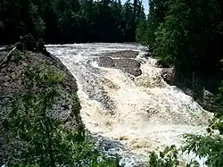 Great Conglomerate Falls is a 30 feet (9.1 m) waterfall on the Black River in Michigan.[2] It is split into two drops in the summertime when water is lower. The falls takes its name from the large conglomerate outcropping in the middle of the river that forms its segmented appearance.