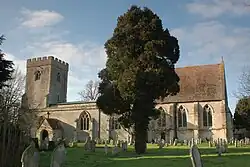 The Church of England parish church of Saint Peter dates from about 1200.[6] The three-bay arcades linking the nave with the north and south aisles are in a Transitional style from Norman to Early English Gothic, as is an external doorway that has been re-set on the west side of the bell-tower.[6] The chancel and its arch were built late in the 13th century,[7] and it retains all of its Decorated Gothic windows from that time.[8] In the 14th century each aisle was extended eastwards with a fourth bay,[6] and at the end of each aisle is a chapel with a squint into the chancel.[8] The northeast chapel is Perpendicular Gothic,[8] as are the bell-tower and the clerestory that was added to the nave.[6] The Gothic Revival architect Thomas Garner restored the chancel in 1897.[8] St Peter's is a Grade I listed building.[9]