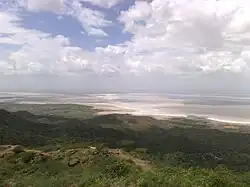 The Great Rann of Kutch is a salt marsh in the Thar Desert in the Kutch District of Gujarat, India. It is about 7500 km2 (2900 sq miles) in area and is reputed to be one of the largest salt deserts in the world.[2] This area has been inhabited by the Kutchi people.[3]