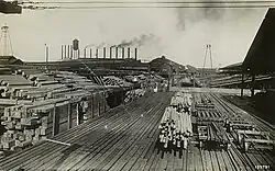 By 1920, the sawmill complex employed more than 1,700 men plus another 1,000 men in logging camps to keep a continuous supply of logs coming to the mill.[7]
