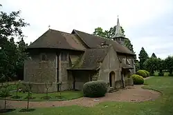 Consecrated in 1904, the Grade I listed parish church, St Mary the Virgin[20] is noted for its Art Nouveau interior,[21] and replaced the original St. Mary's church that was eventually taken down in 1923.[5] A little further to the south is The Kilns Hotel in the building locally known as The Brick House which dates back to the 16th Century and is Grade II listed.
