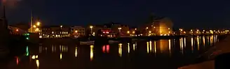 Great Yarmouth is located on a 3.1-mile (5.0 km) spit of land between the North Sea and River Yare.[5] It features historic rows of houses in narrow streets and a main tourist sector on the seafront. It is linked to Gorleston, Cobholm and Southtown by Haven Bridge and to the A47 and A149 by Breydon Bridge. The urban area covers 8.3 sq mi (21 km2) and according to the Office for National Statistics (ONS) in 2002 had a population of 47,288. It is the main town in the Borough of Great Yarmouth.[6]