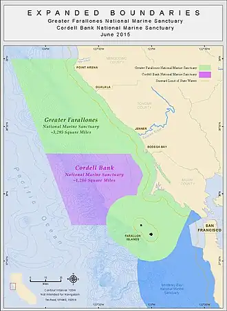 2. ^ "Greater Farallones National Marine Sanctuary". farallones.noaa.gov. Retrieved September 16, 2016.
