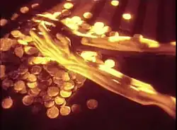 Editing Greed took almost a year and von Stroheim's contract did not include payment for his post-production work.[84] He and his chief film cutter Frank Hull worked on the film for several months before completing a rough cut.[85] Von Stroheim was indecisive during editing. He felt restricted by his contract's limitation on the length of the film.[55] Von Stroheim colored certain scenes with gold tinting by using the Handschiegl Color Process, in which individual frames are hand colored with stencils.[86] Von Stroheim credited himself in the beginning titles with "Personally directed by Erich von Stroheim."[87]