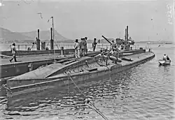 The poor condition of the hulls and ballast tanks of the submersibles along with the absence of radios and gyrocompasses led to their decommissioning in early 1920. One of the periscopes and some of the electric motors were used for training purposes in the Hellenic Naval Academy, while the pressure hulls were sold to the Port of Piraeus Authority.[28]