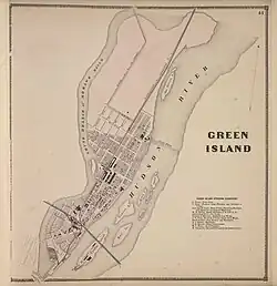 Green Island was called by the Native Americans Pachanhanit or Nehanenesick, and was owned by the natives Amenhanit, Aepjen, and Wanapet until they sold it in 1665.[7] The island was part of the Manor of Rensselaerswyck begun by the Patroon Kiliaen van Rensselaer, whose great-grandson (Colonel Kiliaen van Rensselaer) sold the island in 1708 to Colonel Pieter Schuyler. The island was sold, in 1714, to Hendrick Oothout. In 1796, the northern part of the island was purchased by George Tibbits, after whom the island received its name of Tibbits Island; while the southern portion of the island was sold by the Oothout family in 1833 to Daniel Cady. The next year, Cady sold the land to the Tibbits family.[8]