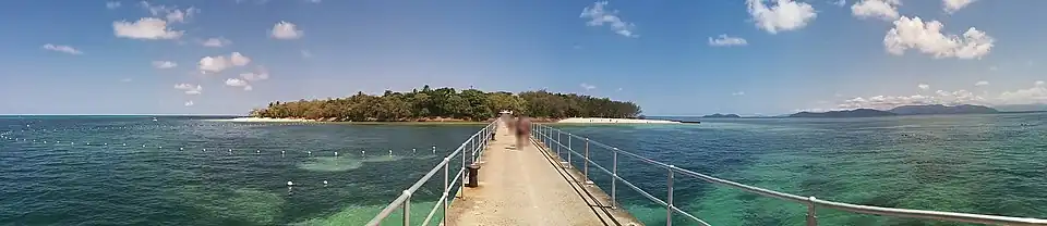 Green Island is coral cay 27 km (17 mi) offshore from Cairns, Queensland, Australia located within the Great Barrier Reef Marine Park World Heritage Area in the Coral Sea. The island is surrounded by coral reef and protected in the Green Island National Park. Most visitors come for the day. A luxury resort with 46 rooms is situated on the island.[4]