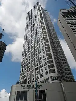 Twin Oaks Place is a twin tower residential condominium development along Shaw Boulevard consisting of a 43-storey East Tower and a 49-storey West Tower. Its first tower, West Tower, was completed in 2014, while its second tower, East Tower, was topped off in October 2017.[15][16]