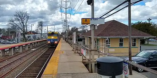 The station is about 1 mile (1.6 km) west of the former junction of the Northport Branch, a freight-only railroad spur into Northport built in 1868: it was abandoned in 1978. A team track for off-line customers of the New York and Atlantic Railway exists just west of the station. It is sporadically used. The platform on the south side of the station is not used. The switches for the siding are hand-operated, not remotely controlled by DIVIDE Tower in Hicksville, thus making it impractical for everyday LIRR use. The siding is mostly used by work trains and, on rare occasions, by New York and Atlantic Railway freight trains.