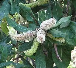 Grevillea hilliana, commonly known as white silky oak, white yiel yiel, Hill's silky oak and grey oak,[3] is a species of flowering plant in the family Proteaceae and is endemic to eastern Australia. It is a tree with lance-shaped to oblong or lobed adult leaves and cylindrical clusters of large numbers of white to pale green flowers.