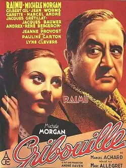 Gribouille (English title: Heart of Paris or The Meddler) is a 1937 French comedy film directed by Marc Allégret, based on story "Gribouille" by Marcel Achard who co-wrote the screenplay with Jan Lustig. The music score is by Georges Auric. The film stars Raimu and Michèle Morgan.[1] It was shot at the Billancourt Studios in Paris, with sets designed by the art director Alexandre Trauner.
