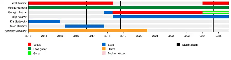 - Pavel Krumov – vocals (2013–2017, 2024-present)
