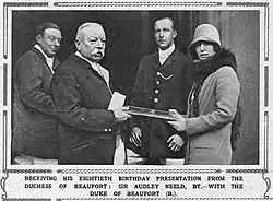 Audley Neeld was born in 1849 at Holt, Wiltshire. He was educated at Harrow and the University of Oxford. In 1873 he married the Hon Edith Vivian, daughter of the second Lord Vivian, but the couple had no children. He joined the 2nd Life Guards and became a commanding officer. He fought in the Boer War and when he returned in 1900 he took up residence in Grittleton House which he had recently inherited.[9]