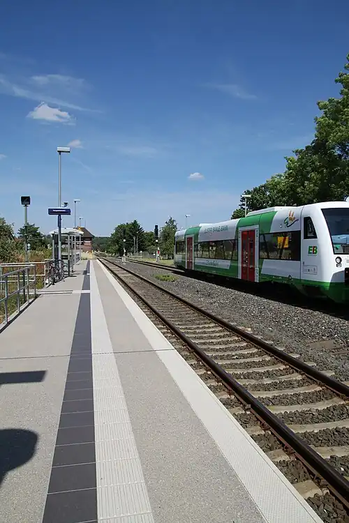 Großschwabhausen station is a railway station in the municipality of Großschwabhausen, located in the Weimarer Land district in Thuringia, Germany.