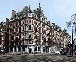 Notable buildings include the Grade II-listed Grosvenor Gardens House at Nos. 23–47, built in about 1868 by the architect Thomas Cundy III in the French Renaissance style.[1]