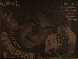 Gruhalakshmi is a 1938 Indian Telugu-language drama film produced and directed by H. M. Reddy. Starring Ramanujacharyulu, Kanchanamala, Kannamba, and Chittoor Nagayya, it was the debut production of Rohini Pictures and marked the cinematic debut of Chittoor Nagayya.[1] The film was an adaptation of the 1929 stage play Rangoon Rowdy by Somaraju Ramanuja Rao and was a commercial success.[2][3] Gruhalakshmi is notable for introducing Kanchanamala as Telugu cinema's first "oomph" girl, gaining widespread attention for its daring portrayal of sensuality.[4] The film also marked an early career role for K. V. Reddy, who worked as a cashier for Rohini Pictures before becoming a renowned filmmaker.[2]