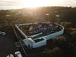 The Guadalcanal American Memorial is a World War II monument on Guadalcanal in Solomon Islands. Dedicated on August 7, 1992,[1] it was established as a tribute to the Americans and their allies who lost their lives during the Guadalcanal Campaign from 7 August 1942 to 9 February 1943. The capital city of Honiara is to its north.[2] To mark the 50th anniversary of the Red Beach landings, the U.S. War Memorial was dedicated on 7 August 1992. An account of this is also inscribed on red marble tablets inside the monument compound.[3] The memorial was a joint effort of the American Battle Monuments Commission (ABMC) and the Guadalcanal-Solomon Islands Memorial Commission,[2] and was at the initiative of Robert F Reynolds, Chief of Valors Tours Ltd.[4] The memorial is maintained by the ABMC. Every year on 7 August, a commemorative ceremony is held to mark the first day of the battle.[5] Another monument, erected by the Japanese on Mount Austen, is a tribute to the Japanese who lost their lives.[6]