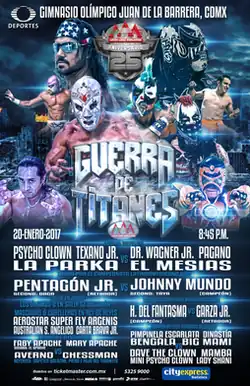 Guerra de Titanes (Spanish for "War of the Titans") was a major professional wrestling event scripted and produced by Lucha Libre AAA World Wide (AAA), a Mexican promotion. The event was the twentieth annual Guerra de Titanes show which, until 2015, has traditionally been AAA's "end of the year" show. In 2016 the show was shifted from December to January instead. The show was held in Gimnasio Juan de la Barrera in Mexico City, Mexico which also hosted the 2016 Guerra de Titanes show.