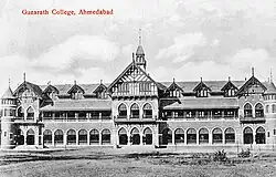 Gujarat College started as a small educational institution in 1860[1] due to efforts of Theodore Cracraft Hope,[3] who inspired local people for charity, which led to the start of the institution.[6][7] Thus the institute was started in 1860 as Gujarat Providential College but ceased to work in 1872. However, after a gap of five years it was restarted in 1879 as Gujarat College under management of the Gujarat College Committee, which at that time was under the able leader ship of local textile magnate, Rai Bahadur Sheth Ranchhodlal Chotalal.[7][8][9][10] Later his grandson and philanthropist Sardar Sir Chinubhai Madhavalal Bert, ICE in 1897 came forward and donated 33 acres of land along with generous cash donations worth millions of rupees for the expansion of Gujarat College. To mention, in the year 1897, he donated 6 lakh (US$7,100) and further 20 lakh (US$24,000) for the construction of Arts College[11] to which he further added a sum of 1.5 lakh (US$1,800) for a library and college hall.[11] The buildings that came up from these donations were Madhavlal Ranchodlal Science Institute named after father of Sir Chinubhai, Sydenham Library and George V Hall, which all were inaugurated by Lord George Sydenham Clarke in 1912, 1915 and 1917, respectively.[11] The Engineer, Rai Bahadur Himmatlal Dhirajram Bhachech, who was President of Ahmadabad Municipality at that time, overlooked the construction of college buildings. The first college building was constructed in the year 1897, which followed more buildings appearing on the land using the generous flow of donations by Sir Chinubhai Madhavalal, Bert, ICE, who again donated another sum of 10 lakh (US$12,000) as patron of college .[2]