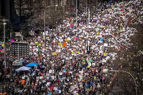 Following the Las Vegas shooting in October 2017 and the Stoneman Douglas High School shooting in February 2018, President Donald Trump and the Department of Justice (DOJ) sought ways to ban bump stocks, devices that can be used to make semi-automatic weapons fire as fully automatic ones as used in both shootings. Initially, the DOJ believed it had to wait for Congress to pass the appropriate legislation to ban the sale and possession of bump stocks.[119] However, by March 2018, the DOJ introduced proposed revised regulations on gun control that incorporated bump stocks under the definition of machine guns, which would make them banned devices, as Congress had not yet taken any action.[120] After a period of public review, the DOJ implemented the proposed ban starting on December 18, 2018, giving owners of bump stocks the option to either destroy them or turn them into authorities within 90 days, after which the ban would be in full effect (on March 26, 2019).[121] Pro-gun groups immediately sought to challenge the order, but could not get the Supreme Court to put the ban on hold while the litigation was ongoing.[122] In the following week, the Supreme Court refused to exempt the litigants in the legal challenge from the DOJ's order after this was raised as a separate challenge.[123]
