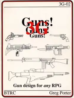 Guns! Guns! Guns! provides step-by-step instructions on how to design virtual firearms for any roleplaying game system.[1] Some of the parameters covered are damage value, projectile velocity, range limit, and barrel length.[2] The book provides conversions of this data for eight different RPG systems, including GURPS and Torg.[2]