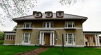 The house was built in 1911 to a design by Boston architect Thomas Marriott James. It was the most expensive house built in Augusta that year.[3] It was built for Guy P. Gannett, one of the most important figures in Maine's newspaper publishing industry. The house was a showcase of modern conveniences of the period, including electric light fixtures, and an elevator for bringing firewood up from the basement. It also has an early example of a whole house vacuum cleaning system. At the time of its listing on the National Register in 1983, it housed the state's planning office.[2]