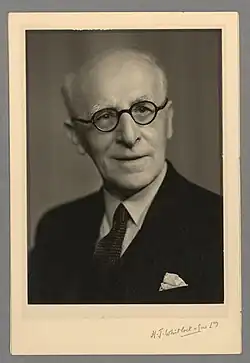 He was appointed a Commander of the Order of the British Empire (CBE) in the 1948 Birthday Honours;[3] in 1954, the University of Wales awarded him an honorary doctorate of laws (LLD).[1] He died in hospital in Aberystwyth on 26 January 1955, aged 75.[2] He was survived by his wife, the peace activist Mary Elizabeth Ellis.[4] They had married during WW2.[5] His ashes were scattered at Lavernock Point, Penarth, where Marconi transmitted the first radio messages across water.[1]