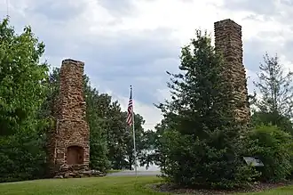 Gwin Dudley Home Site, also known as Twin Chimneys, is a historic home site located at Smith Mountain Lake, Wirtz, Franklin County, Virginia. The site consists of two extant stone chimneys that are situated 31 feet, 8 inches apart (inside face to inside face), indicating the length of the house, which was lost to fire in the early 20th century. They were part of a house erected about 1795.[3]