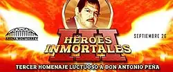 Héroes Inmortales III: Homenaje a Don Antonio Peña (Spanish for "Immortal Heroes III: Tribute to Antonio Peña) was a professional wrestling major show event produced by AAA that took place on September 26, 2009 in Arena Monterrey, Monterrey, Mexico, commemorating the third anniversary of the death of AAA founder Antonio Peña.[1] The main event of the show was a AAA Mega Championship title defense where then reigning champion Dr. Wagner, Jr. defended the championship against challenger El Mesías.[1] The other featured match on the show was the third annual Copa Antonio Peña, a 12-man Battle Royal. The show was originally called just Homenaje a Antonio Peña but was renamed to Héroes Inmortales in the weeks leading up to the event.[2]