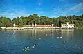 Between 1944 and 1946 the buildings were used as a hospital, first by the German then by the Soviet army. In 1948 it fell under state ownership; the State Medicinal Bath, Hévíz, was established by the Ministry of Health on 1 January 1952. The number of visitors tripled then quadrupled, and the machinery of the hospital and the treatments were modernised. On 3 March 1986, the central buildings of the bath (in the lake) burnt down.[1] In September 1989 the reconstruction of the destroyed parts was completed.