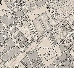 The hôtel-Dieu was founded in the 11th century by Count Henry the Liberal of Champagne, and held by the Augustinian order with assets such as a mill in 1174.[2] It is part of the same foundation as the collegiate church of Saint-Étienne de Troyes and was under the same name of Domus Dei B. Stephani. Stephani. It was part of the palace complex of the counts of Champagne, which included the palace, the collegiate church and the Hôtel-Dieu.