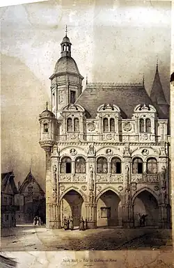 At least as far back as the 15th century, and possibly before, the aldermen met at the Saint-Esprit Hospital. In the 16th century, they decided to commission a meeting place which would be known as the Maison Commune. The site selected was in the central part of the town (now Place du Maréchal Foch). Construction started in 1553 but was delayed because of the French Wars of Religion. The new building was designed in the Renaissance style, built in ashlar stone and was completed in 1612. The building featured a series of arches on the ground floor, a series of bi-partite round-headed windows, with colonettes separating the parts, on the first floor, and a series of bi-partite mullioned windows, with curved pediments, at attic level. It also featured bartizans at the corners and an octagonal belfry on the roof.[2]