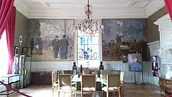 The room where the Doullens Conference was held was later transformed into a permanent memorial to the event: the additions included a pair of busts depicting Clemenceau and Milner created by the sculptor, François-Léon Sicard, in 1918, a stained glass window, designed by Gérard Ansart and made by Jean Gaudin, in 1937, and two murals painted by Lucien Jonas in 1938.[10][11]