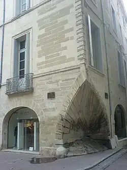 • Hôtel de Varennes[15] Originally medieval, renovated and façade added in the 18th century. The interior consists of several rooms with gothic rib vaults and ancient romanesque columns from a church previously located here. The 14th century Salle Pétrarque is the official reception hall of the city of Montpellier.[2]