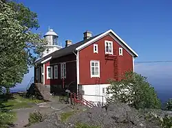 The lighthouse was built after complaints that there were no lighthouses between Lungö and Skagsudde. It is the second-highest placed lighthouse in Sweden (after Kullen Lighthouse), and it was also one of the most powerful.[3] In November 2010 the old lens was finally retired and the power source changed to solar cell-power. The light now consists of a small white light on the balcony's railing and the red and green sectors were removed. As of 2012 the tower is in bad condition and in need of repairs. It is owned by the Swedish Maritime Administration.
