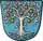 The community’s arms might be described thus: Or a side sinister and dexter and a fess joining them between the fess point and the honour point, the whole gules with the fess between ten dolmens azure, four of which in chief.
