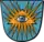 The coat of arms was approved in December 1979 by the State Archive in Darmstadt, and was given its form by Bad Nauheim heraldic artist Heinz Ritt after the community’s guidelines. The ten dolmens symbolize the ten formerly self-administering communities, and the sides (stripes down each side) and the fess (horizontal stripe) form a red uppercase H, the new (in 1972) greater community’s initial letter. The H’s crossbar also stands for the Hühnerstraße (road), which splits the community into four constituent communities on one side and six on the other.