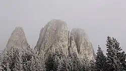 The Hășmaș Mountains (Romanian: Munții Hășmaș; Hungarian: Hagymás-hegység) are limestone and sandstone massifs located in Romania, in the Inner Eastern Carpathians group of the Eastern Carpathian Mountains. They belong to the Bistrița Mountains range, and are bordered by the Giurgeu Mountains to the north, the Tarcău Mountains to the east, the Ciuc Mountains to the south, and the Harghita Mountains to the west.