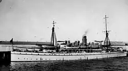 She was recommissioned on 27 April 1933, to perform urgent strategic surveys of the waters north of Australia.[2] During the 1930s, conditions for the sailors aboard were a matter of contention.[3] Survey work was already arduous, but the ship had not been designed for tropical operations, causing greater discomfort.[3] In addition, the sailors had experienced reductions in pay.[3] Over the course of mid-1934, the number of sailors reported for discipline had increased.[3] These issues came to a head in the early morning of 19 August, when an able seaman punched a petty officer who admonished him for dirtying the ship's paintwork while attempting to move a crate, then insulted the seaman for dropping the crate when a support rope the petty officer was holding came loose.[4] The able seaman was arrested and restrained in irons until the ship reached Darwin in two days time for a court martial.[5] At breakfast, other sailors discussed the incident, with the idea of refusing the morning's call to work.[5] Twenty-seven sailors ignored the bosun's call to work, and when confronted by the executive officer, said they were protesting against conditions and discipline aboard Moresby.[5] After consultation between the captain and his officers, the sailors were informed that they would be charged by warrant (with their actions judged by the captain, instead of by a court martial).[6] After returning to duty, the 27 sailors were later charged with "an act prejudicial of good order and naval discipline" and generally punished by the removal of merit and good-conduct badges.[6] The Australian Commonwealth Naval Board felt that the captain's decision to charge by warrant was alarming, and felt the charges and punishment were an underreaction to what they considered an act of mutiny.[6] After an inquiry into the incident, six of the sailors, plus a seventh who had incited but not participated in the protest, were discharged from the navy, and provisions were made to restore sailor pay levels.[6]