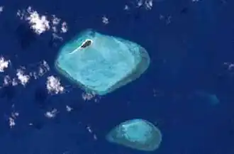 Satellite image of Halfway Island (top) and Kodnasem Reef